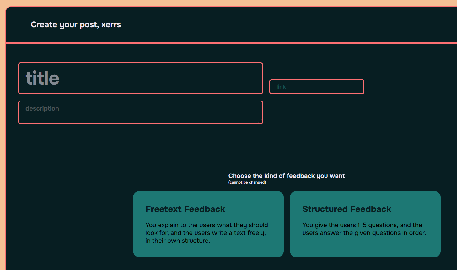 You can setup how you want the the feedback on your post to be structured. For constructive feedback, you can ask (max. 5) questions that should be answered.