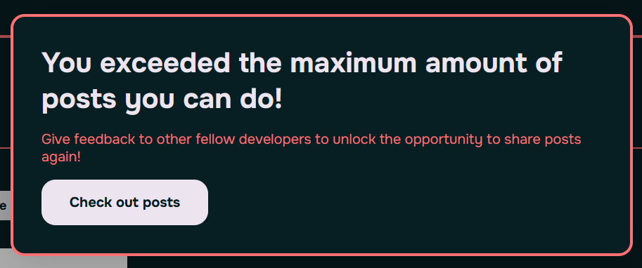 Users who have a larger post count than their feedback count, will be enforced to give feedback before they can post again. This is done to prevent users from spamming posts, and encourages feedback.
