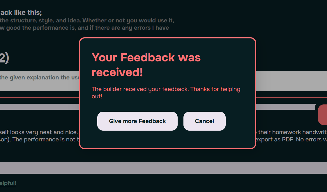 Developers are more motivated to give feedback, if they know that their feedback was well received. Dobda displays that to the users, showing that each and every feedback that was given, is good feedback.